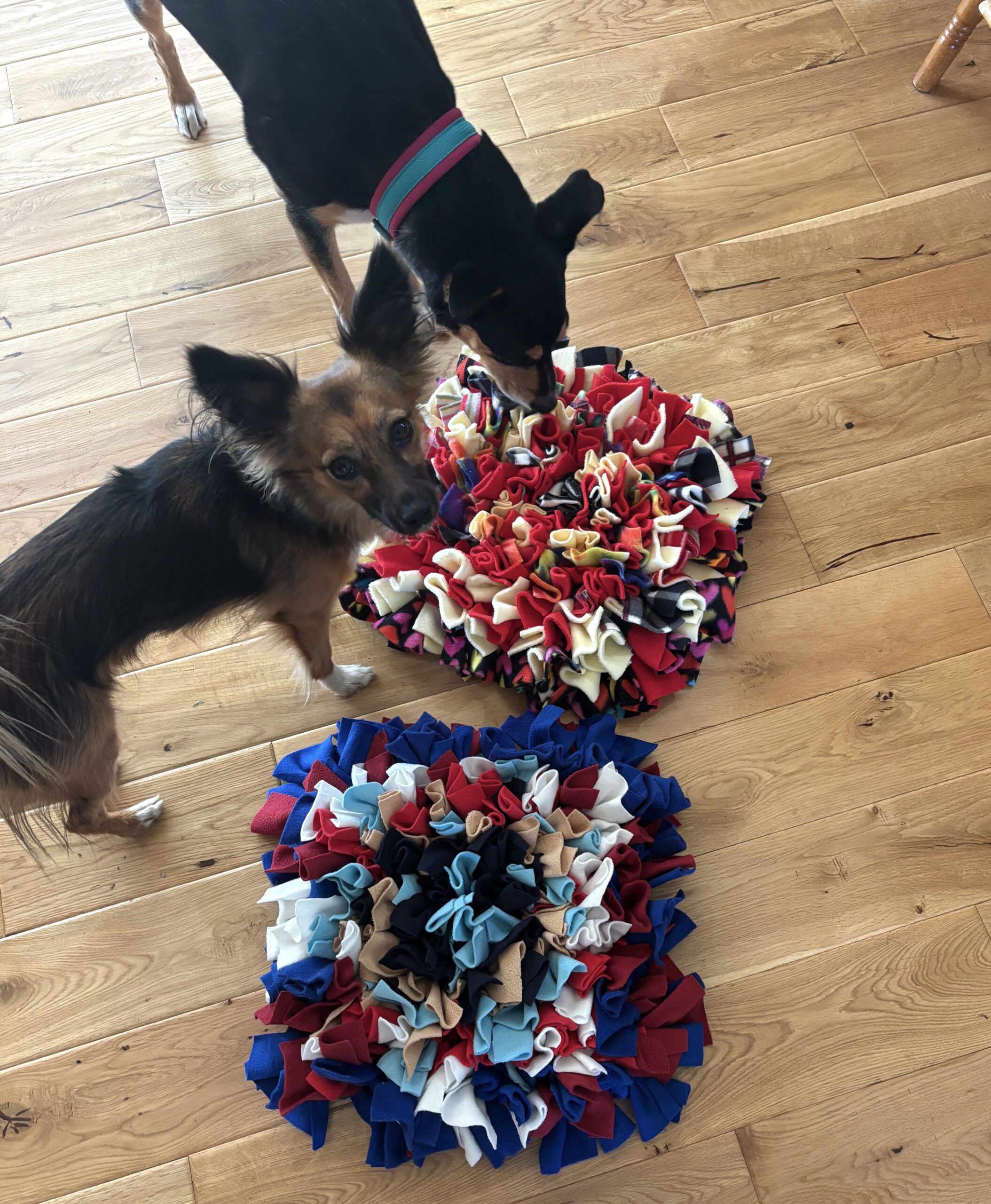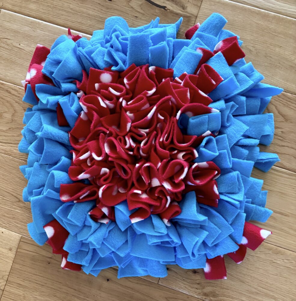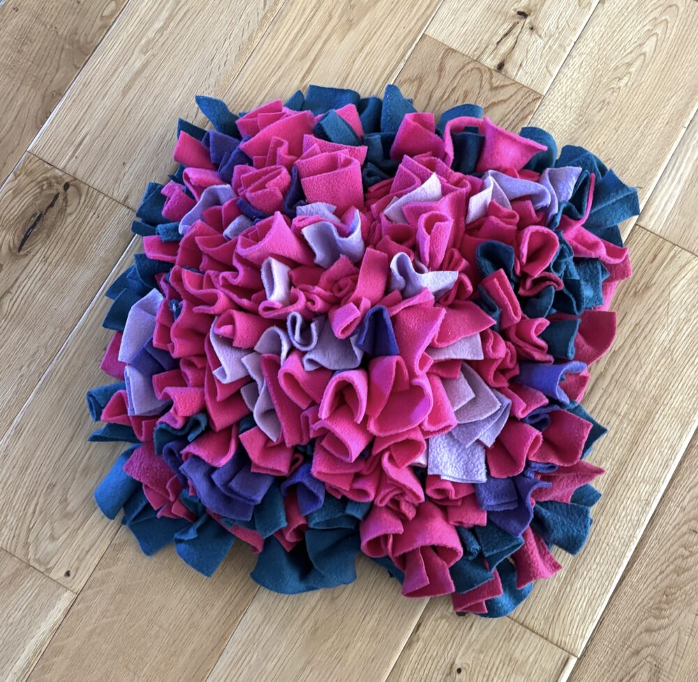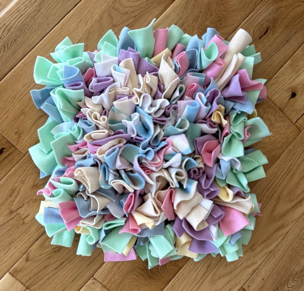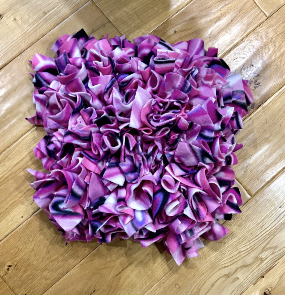 Heavy duty Snuffle mats – 12mm thick rubber base, with knotted fleece fabric, approx. 11″ x 11″ $25 plus shipping, email me for more information.